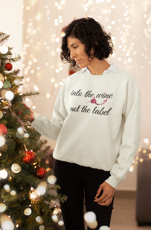 For the ones who appreciate authenticity — and a good glass of wine — the Into the Wine, Not the Label crewneck combines festive comfort with a meaningful message. Featuring elegant script lettering and a subtle wine glass stain graphic, this design celebrates self-expression, inclusivity, and the joy of being unapologetically you.