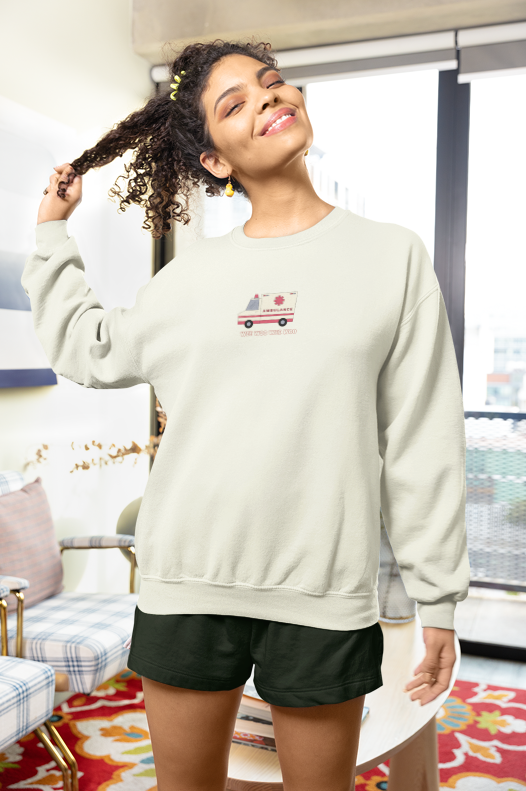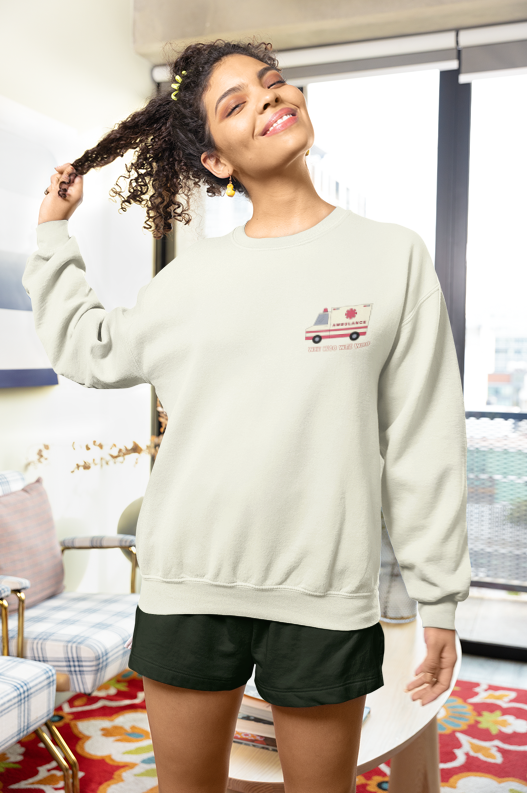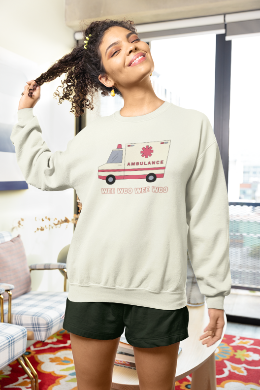 Simple, subtle, and instantly recognizable—our Wee Woo crewneck is for those who know the sound without needing an explanation. Featuring a small, minimalist ambulance graphic with the cheeky “wee woo wee woo” text, this design is a quiet nod to EMS humour and life on the job.